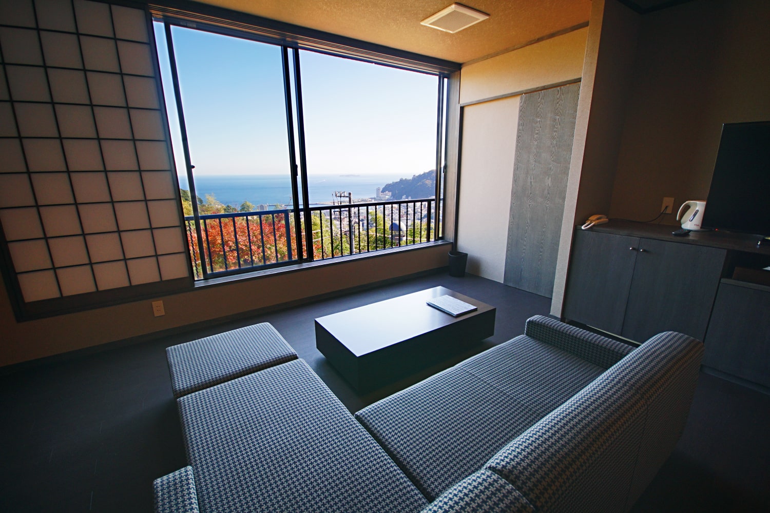 茜色の夕焼けを望みながら、1日が終わっていく熱海の景色をどの客室よりも広く感じられます。