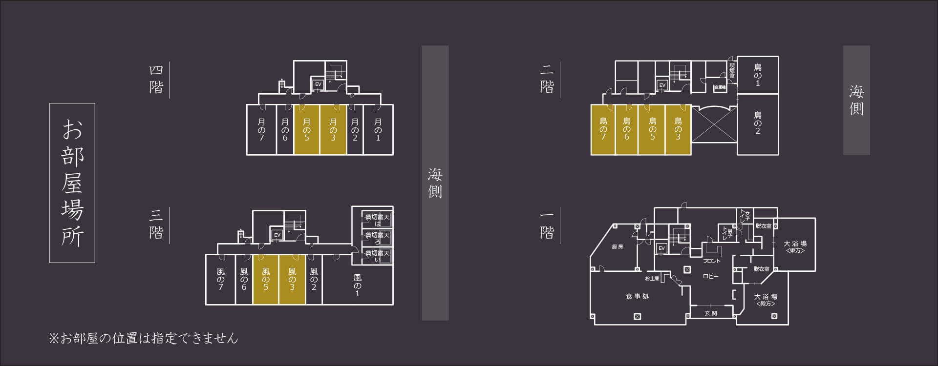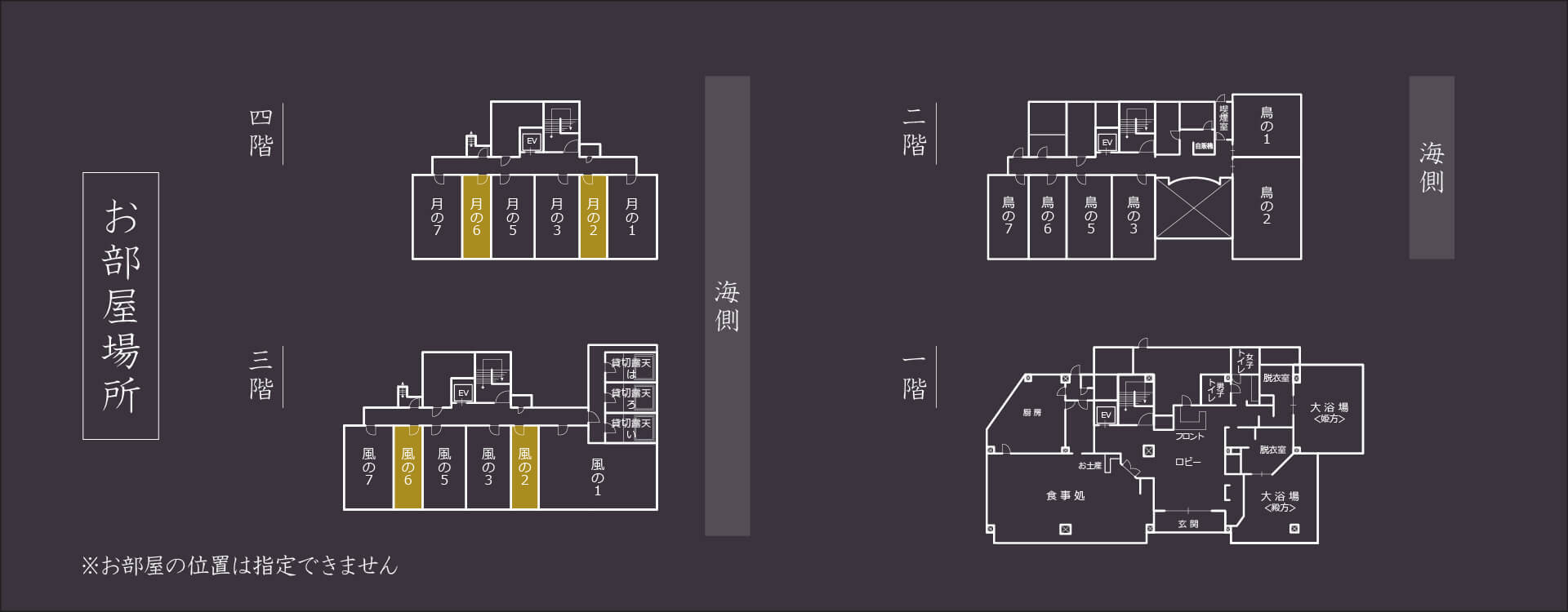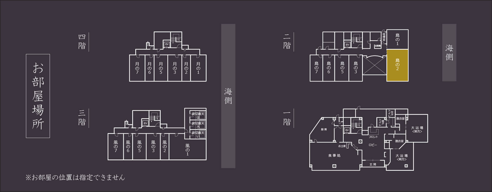 ※「眺望2名専用室」は連休日や当館指定日(3/20-22・4/25-26・5/23-24・7/18-20・7/25-26・9/19-23)
