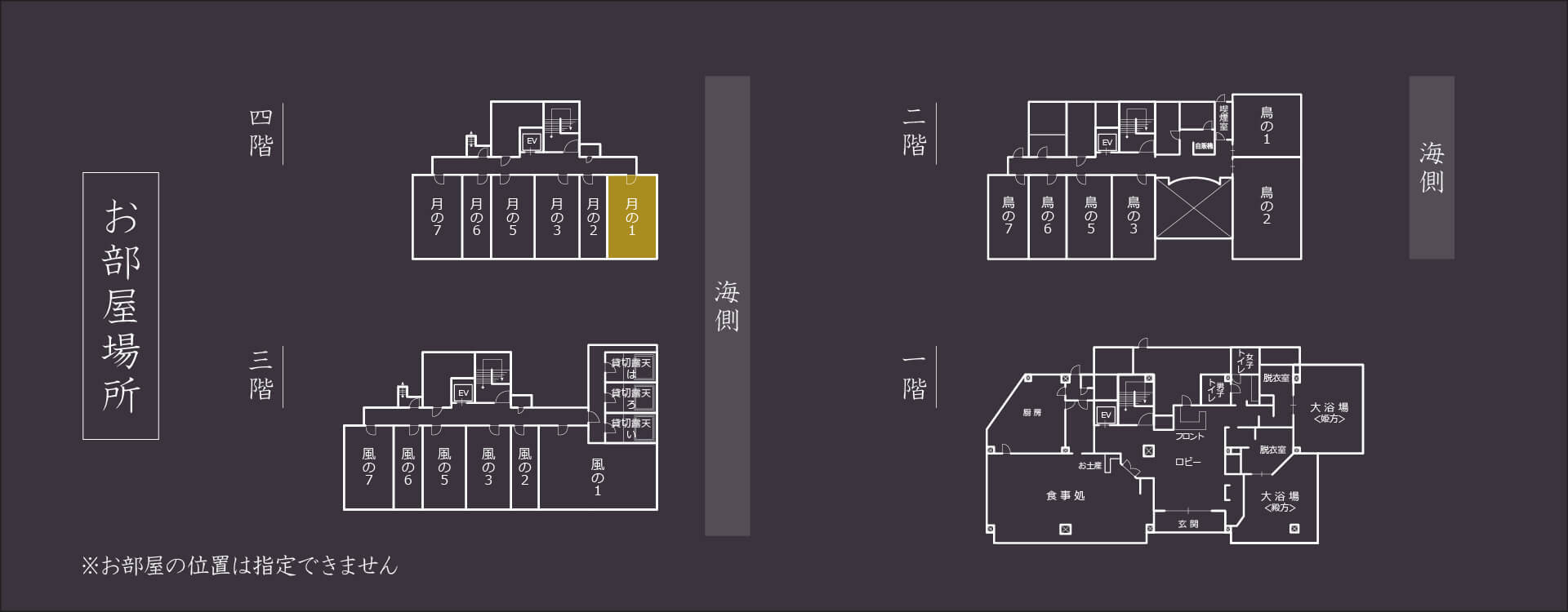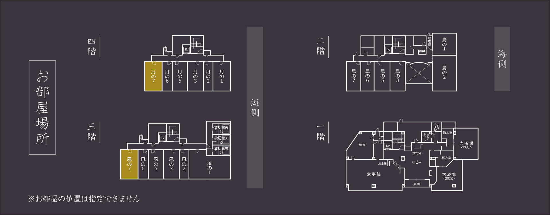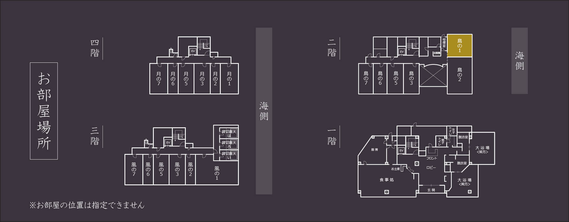 ※「眺望2名専用室」は連休日や当館指定日(3/20-22・4/25-26・5/23-24・7/18-20・7/25-26・9/19-23)