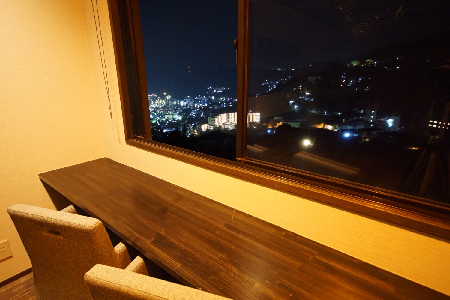最もリーズナブルな客室ですが、自然を感じる山々、輝く夜景をご覧いただけます。